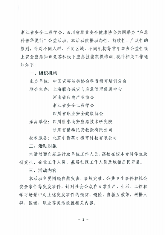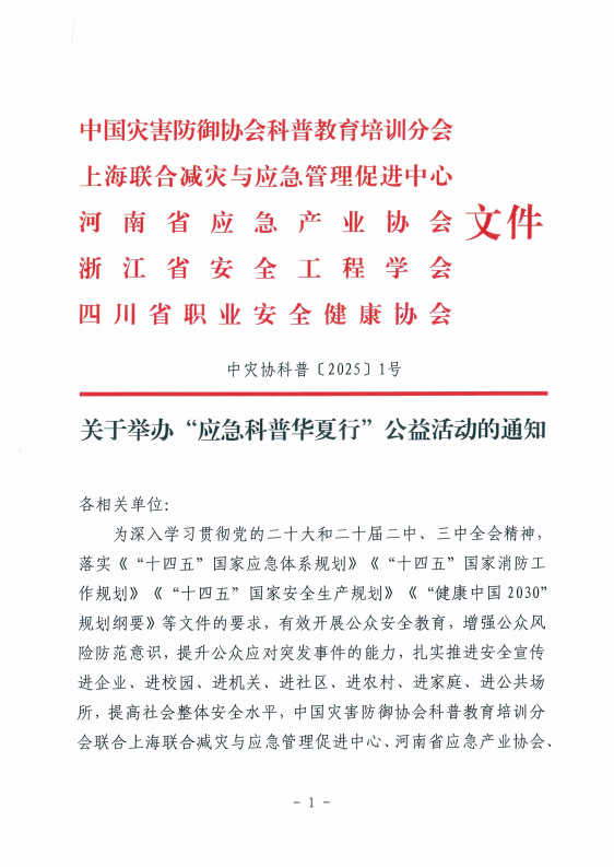 【主办单位文件】关于举办“应急科普华夏行”公益活动的通知